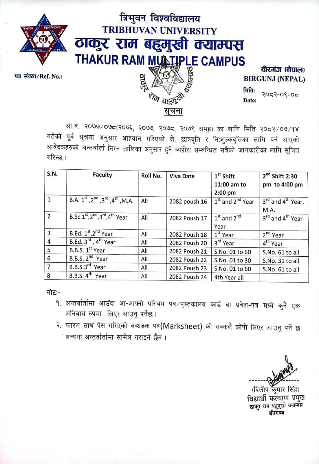 स्नातक तह (BBS, B.Ed.B.Sc. र BA ) प्रथम बर्षको Library Card बनाउने सम्बन्धी सूचना ।