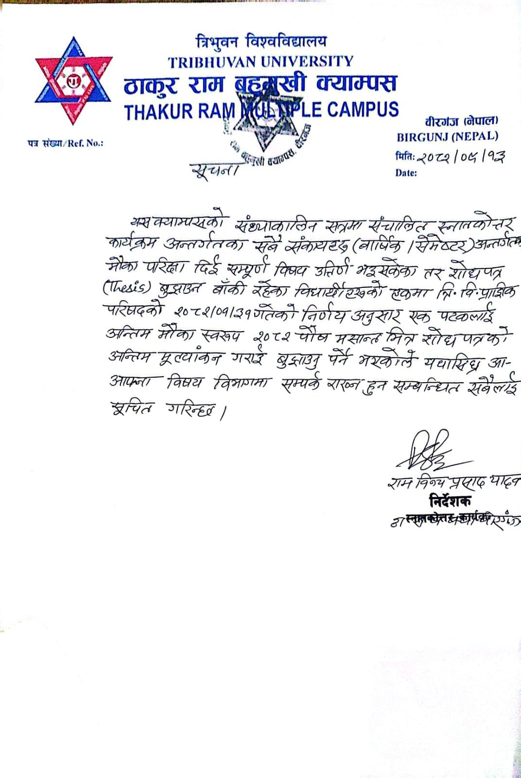 Notice Regarding Practical Exam of B.Ed. 2nd Year (2082)