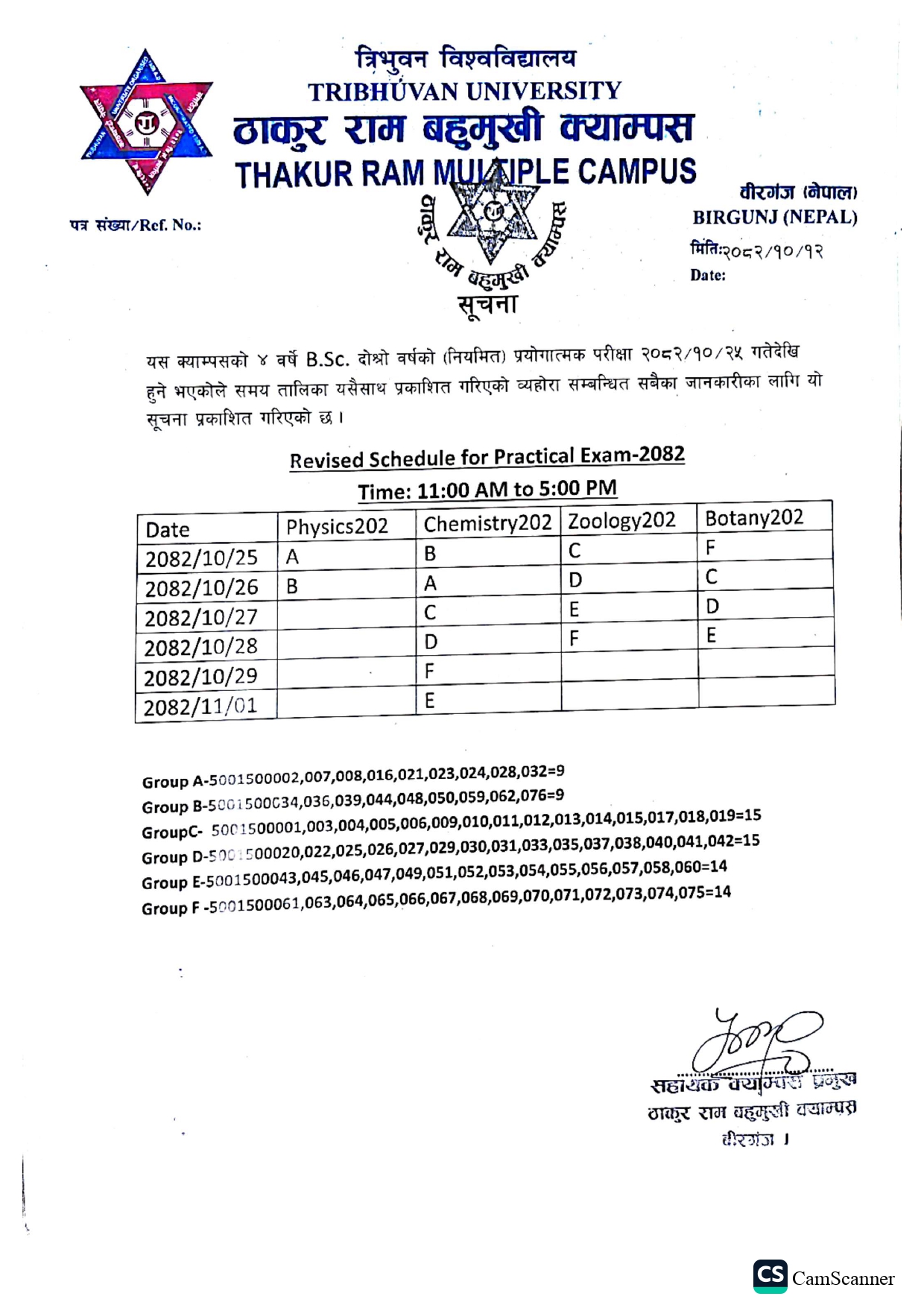 Notice Regarding Practical Exam of B.Ed. 2nd Year (2082)