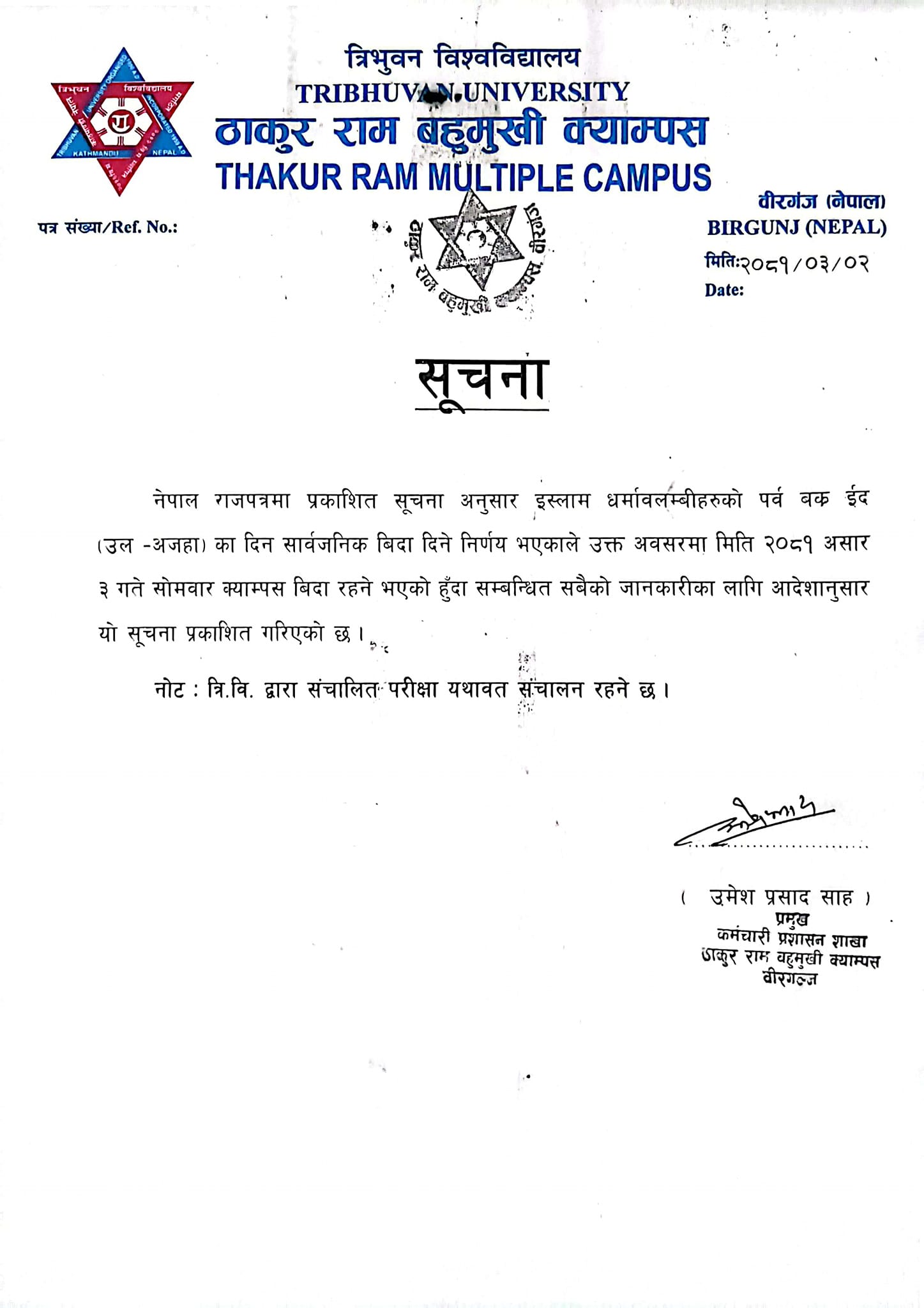 स्नातक तह (B.B.S., B.Ed., B.Sc. र B.A.) तेश्रो बर्ष २०८० समुहको भर्ना तथा कक्षा संचालन सम्बन्धि जरुरी सूचना
