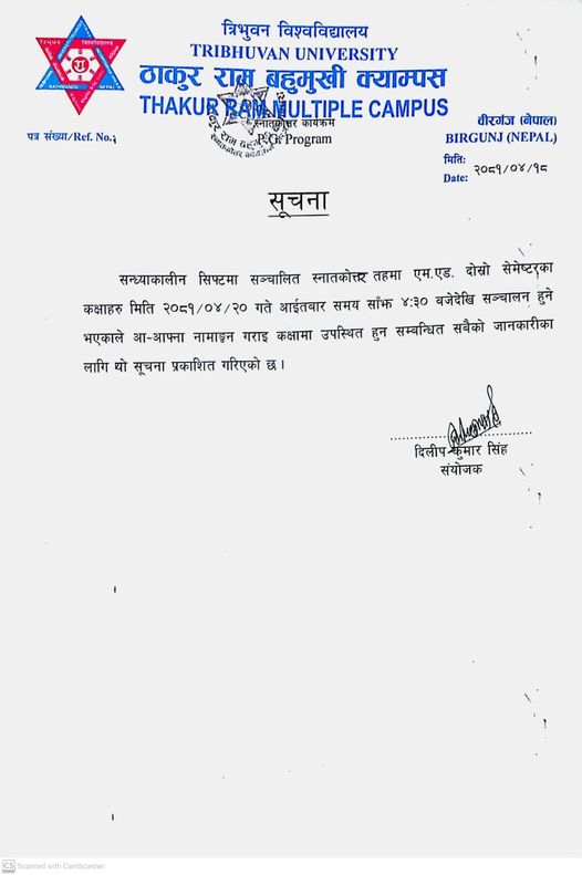 स्नातक तह (B.B.S., B.Ed., B.Sc. र B.A.) तेश्रो बर्ष २०८० समुहको भर्ना तथा कक्षा संचालन सम्बन्धि जरुरी सूचना
