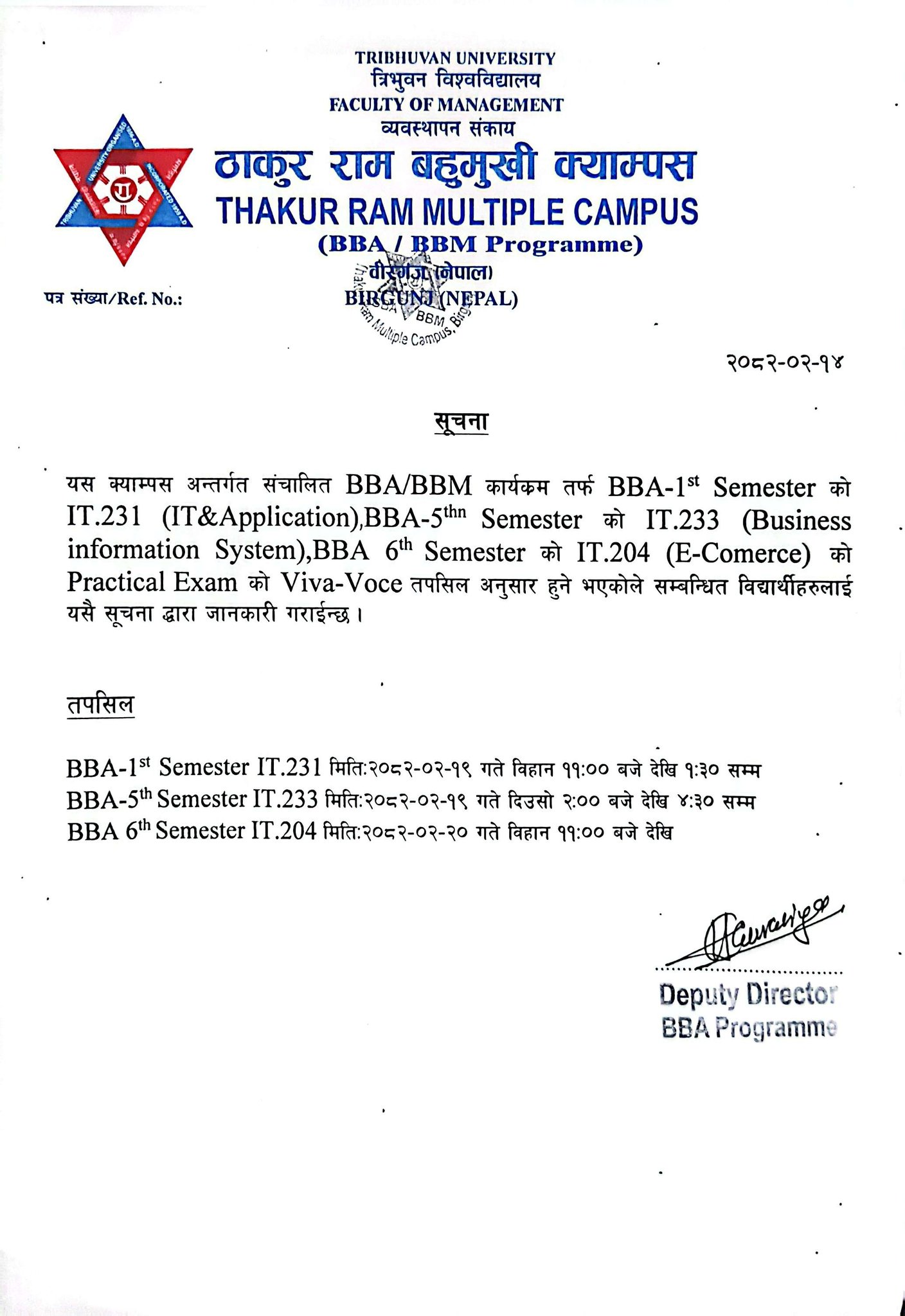 Notice Regarding Practical Exam of BBA/BBM 1st, BBA 5th & BBA 6th Semester