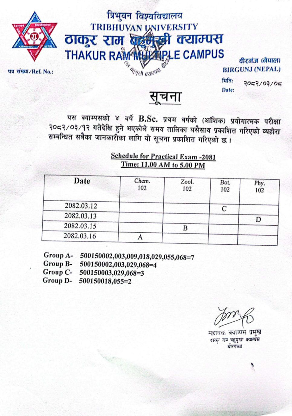 Notice Regarding Practical Exam of B.Ed. 2nd Year (2082)