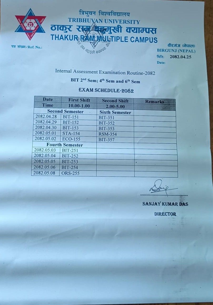 Internal Assessment Exam Routine of BIT 2nd,4th and 6th Semester