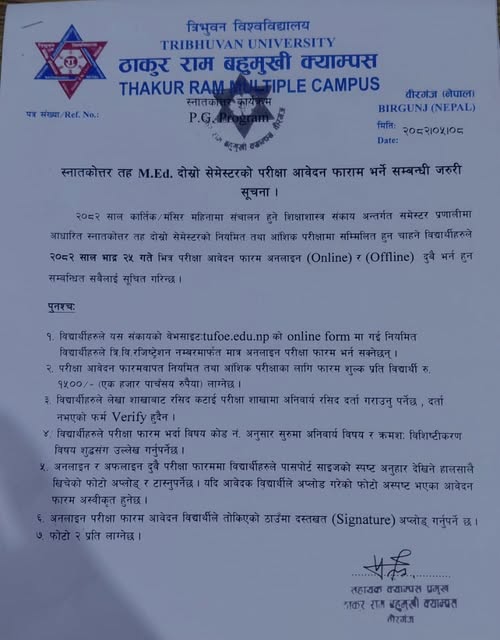 M.Ed. दोश्रो सेमेस्टरको परीक्षा फाराम भर्ने सम्बन्धी जरुरी सूचना